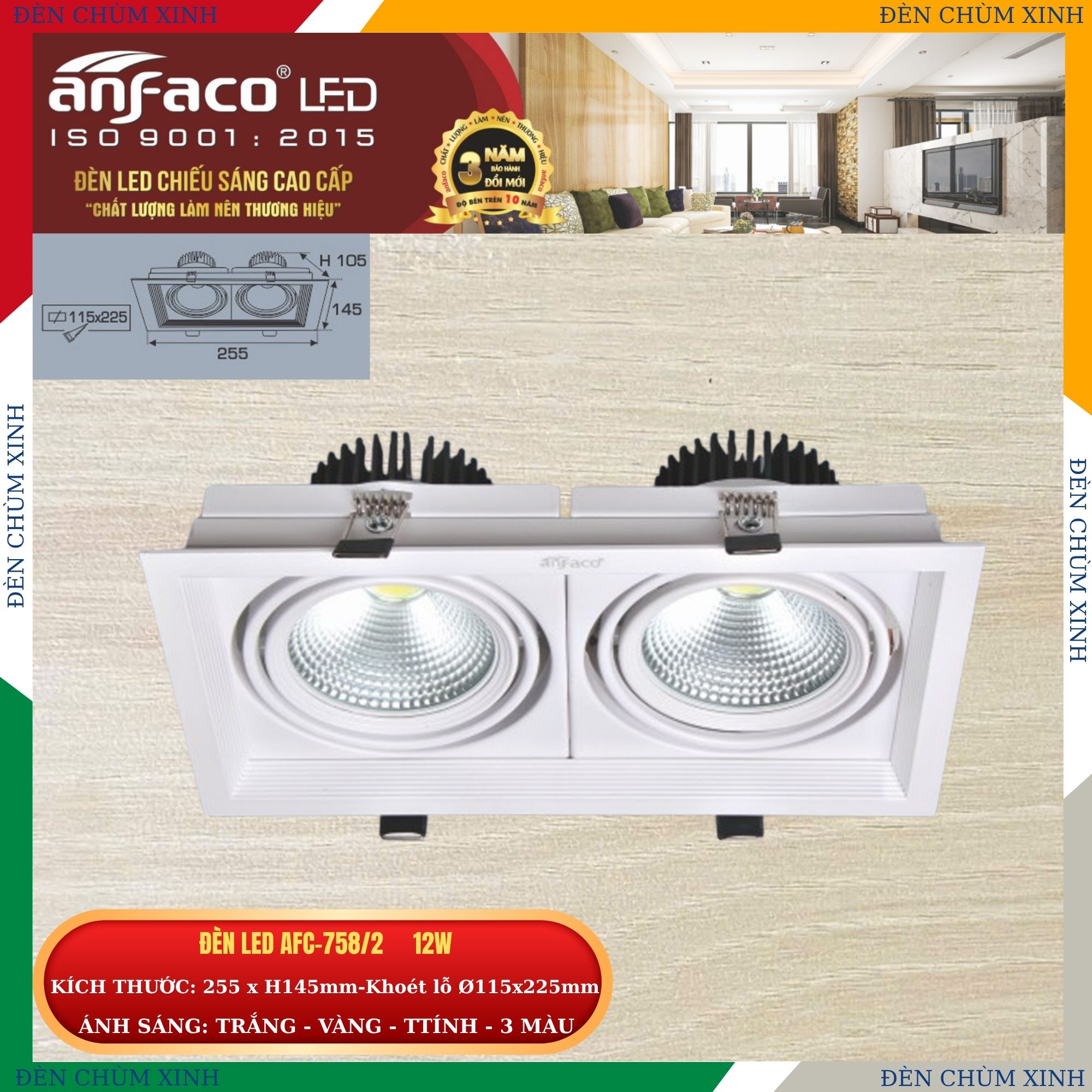 ĐÈN ÂM TRẦN CHÍNH HÃNG ANFACO AFC-757/1-12W