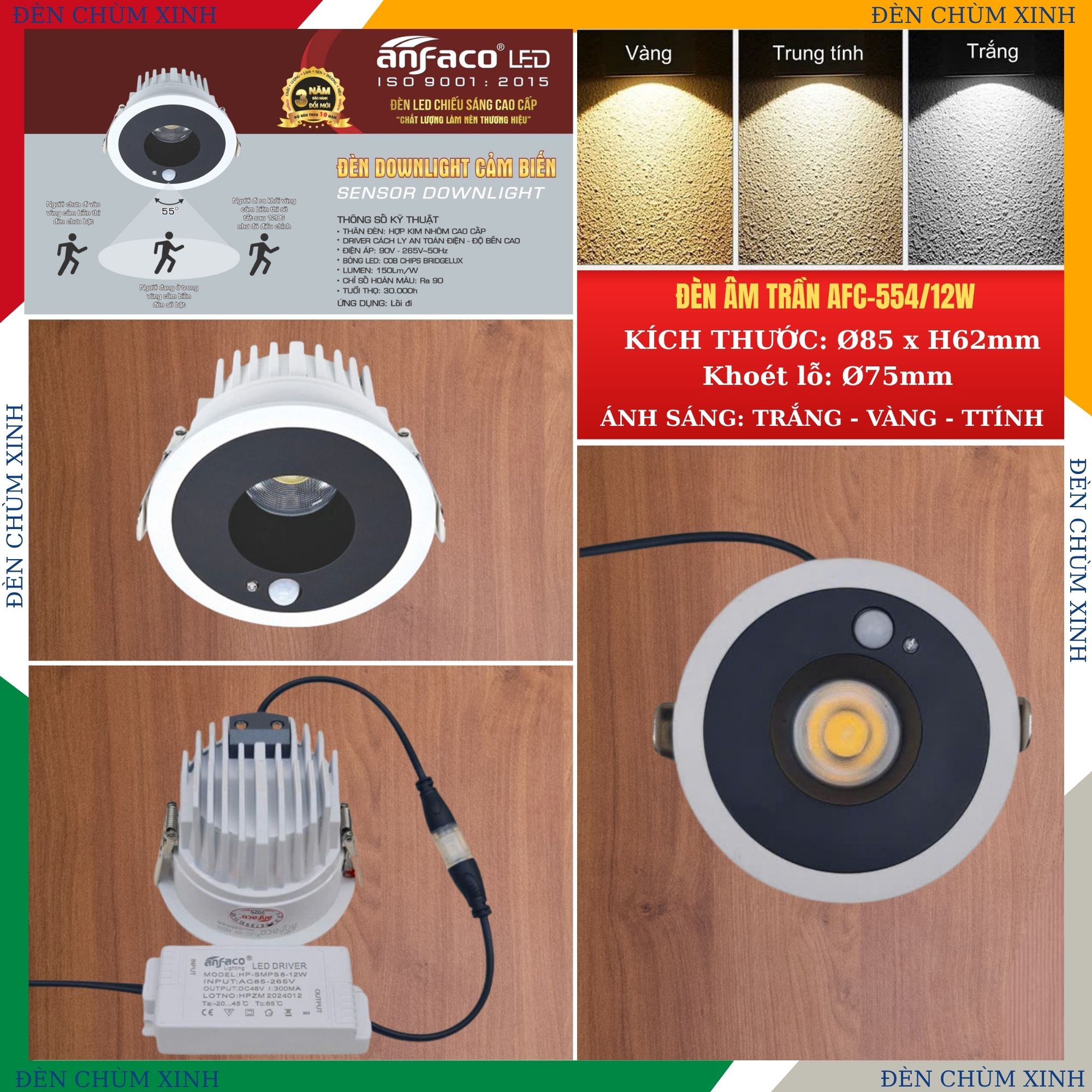 ĐÈN LED ÂM TRẦN CẢM BIẾN AFC-554/12W CHÍNH HÃNG ANFACO