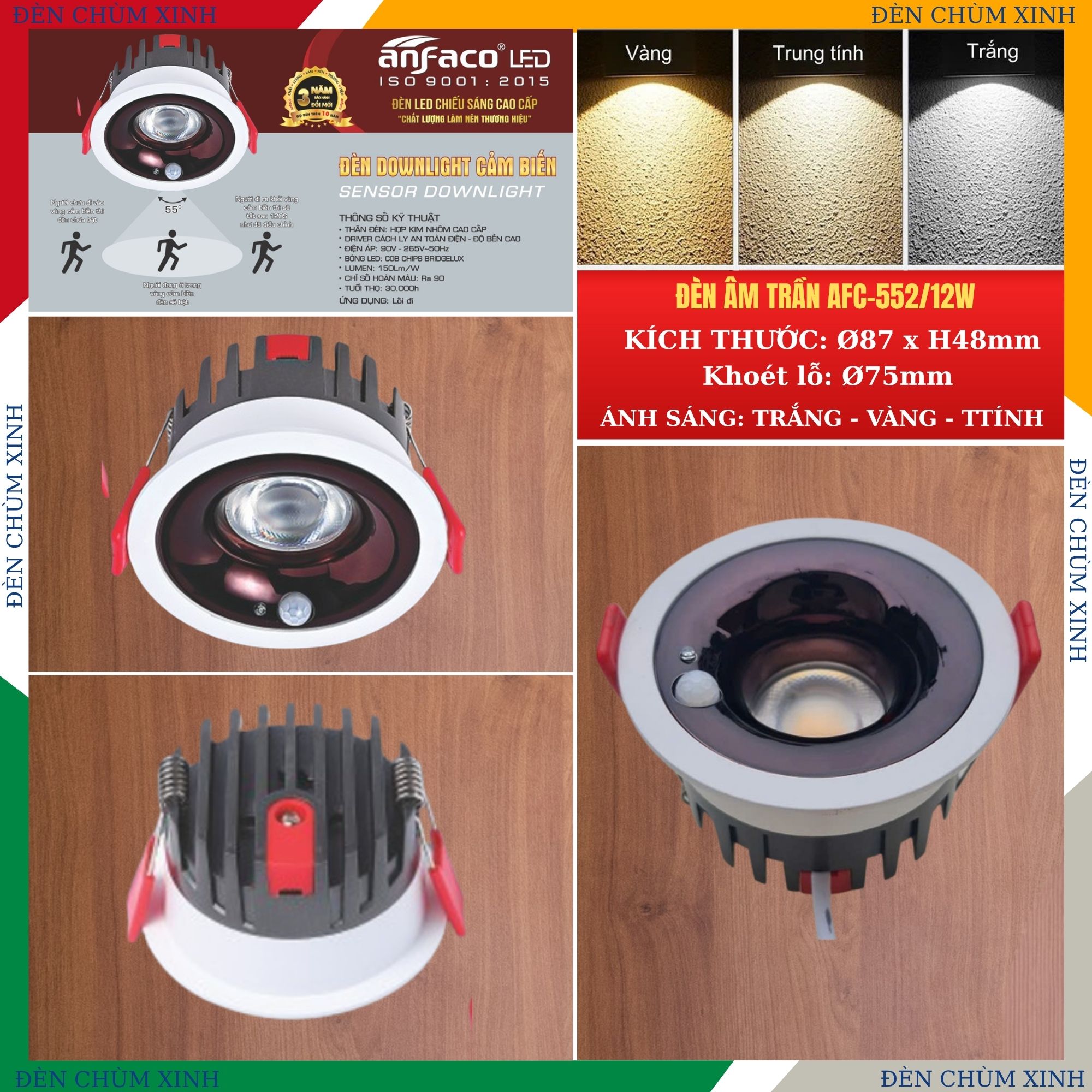 ĐÈN LED ÂM TRẦN CẢM BIẾN AFC-552/12W CHÍNH HÃNG ANFACO