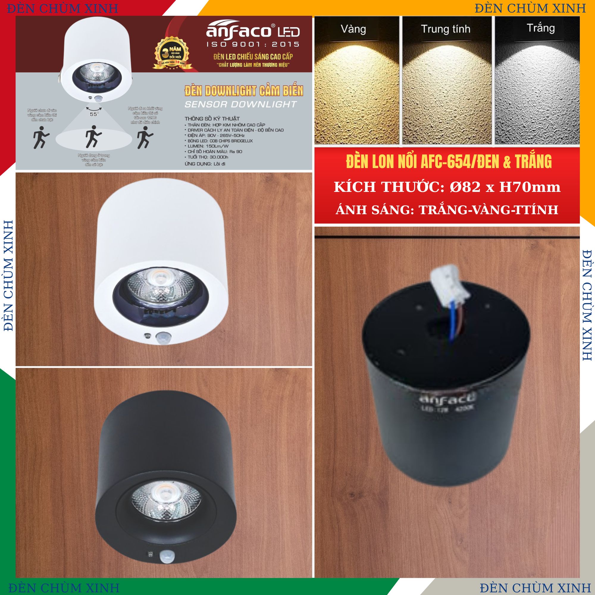 ĐÈN LON NỔI CẢM BIẾN AFC-654/ĐEN CHÍNH HÃNG ANFACO