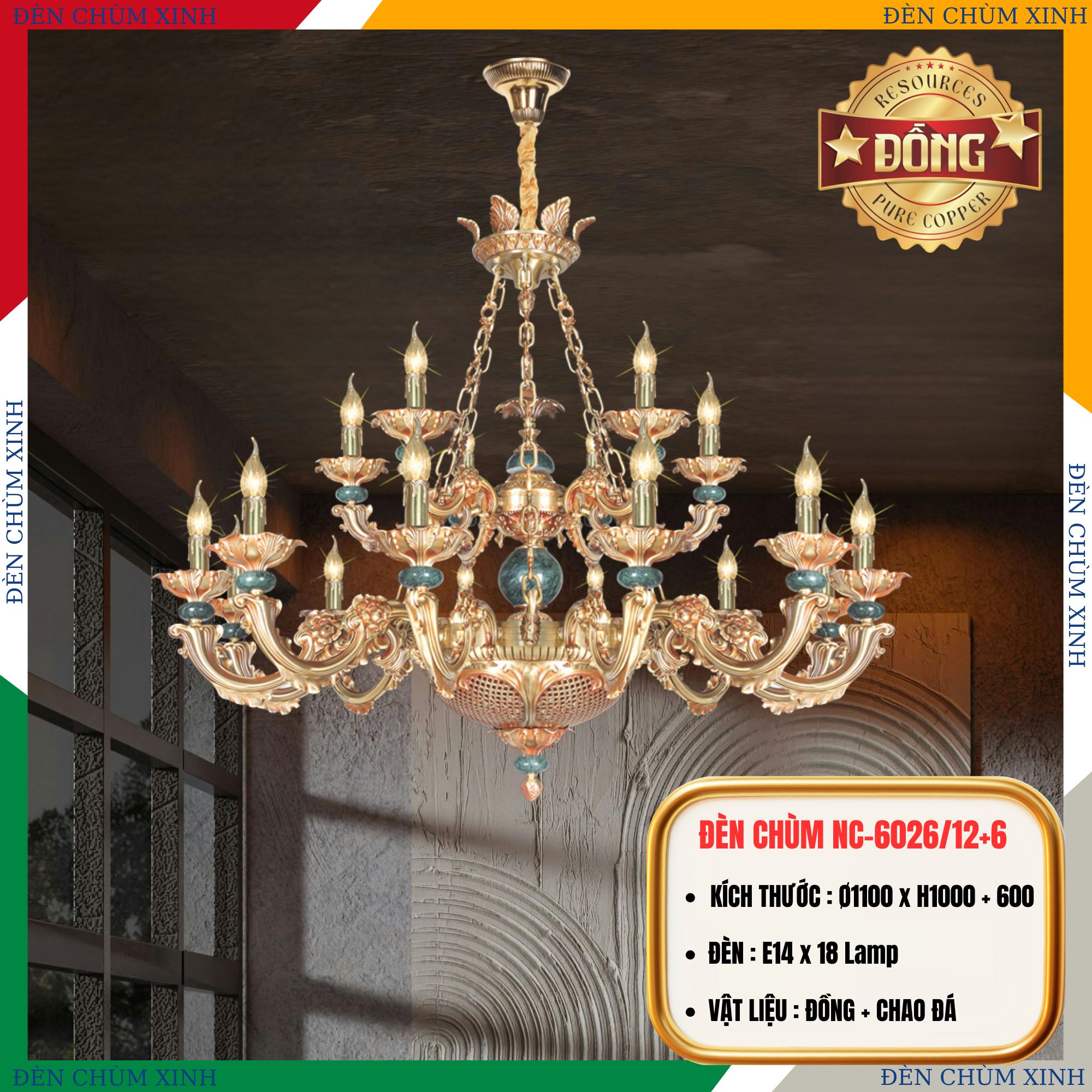 ✅THÔNG SỐ ĐÈN CHÙM ĐỒNG NC-1245/12+12+6: