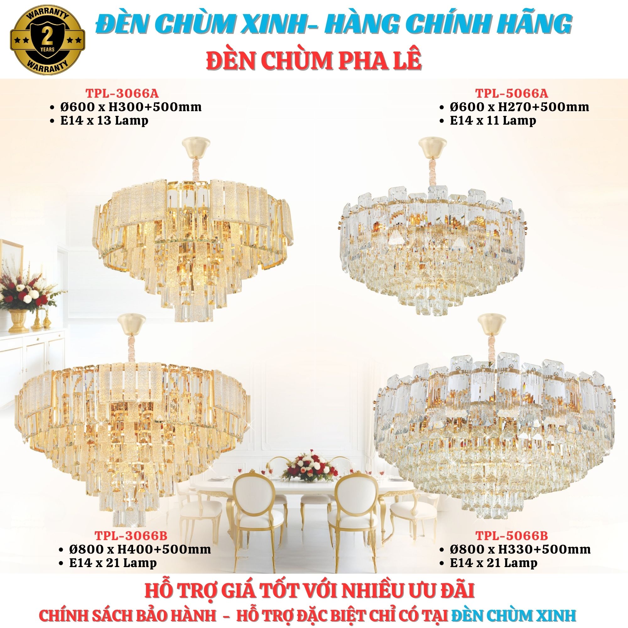 Đèn chùm pha lê được chế tạo trên dây chuyền công nghệ hiện đại, xuất xứ chính hãng. Đèn chùm pha lê là một trong những lựa chọn phổ biến và được ưa chuộng nhất khi thiết kế không gian nội thất. Với vẻ đẹp tinh tế, sang trọng và ấn tượng, đèn chùm pha lê không chỉ là nguồn sáng mà còn trở thành điểm nhấn đặc trưng, tạo nên sự trang nhã và quý phái cho ngôi nhà của bạn.