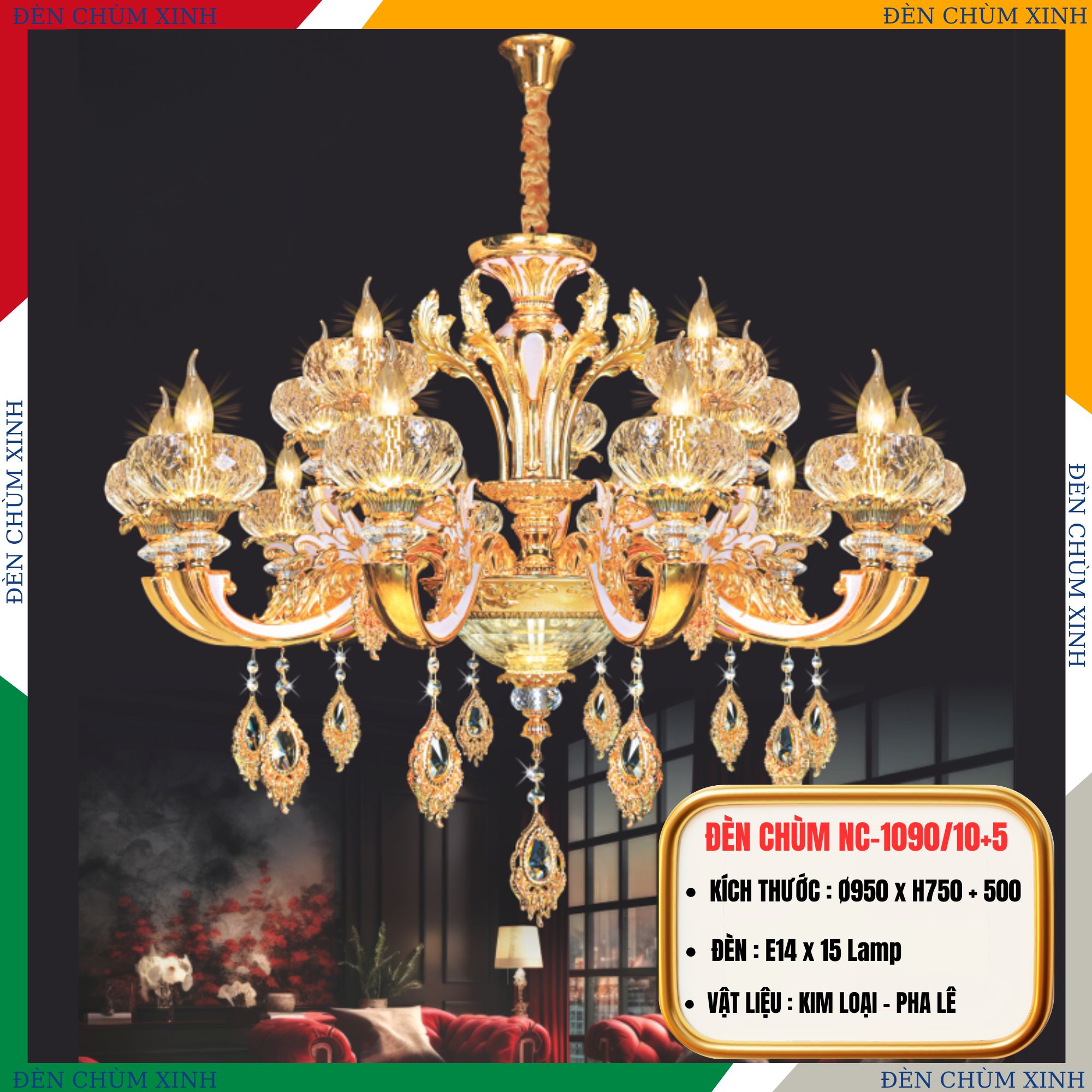 ✅THÔNG SỐ ĐÈN CHÙM TÂN CỔ ĐIỂN NC-1090/8: