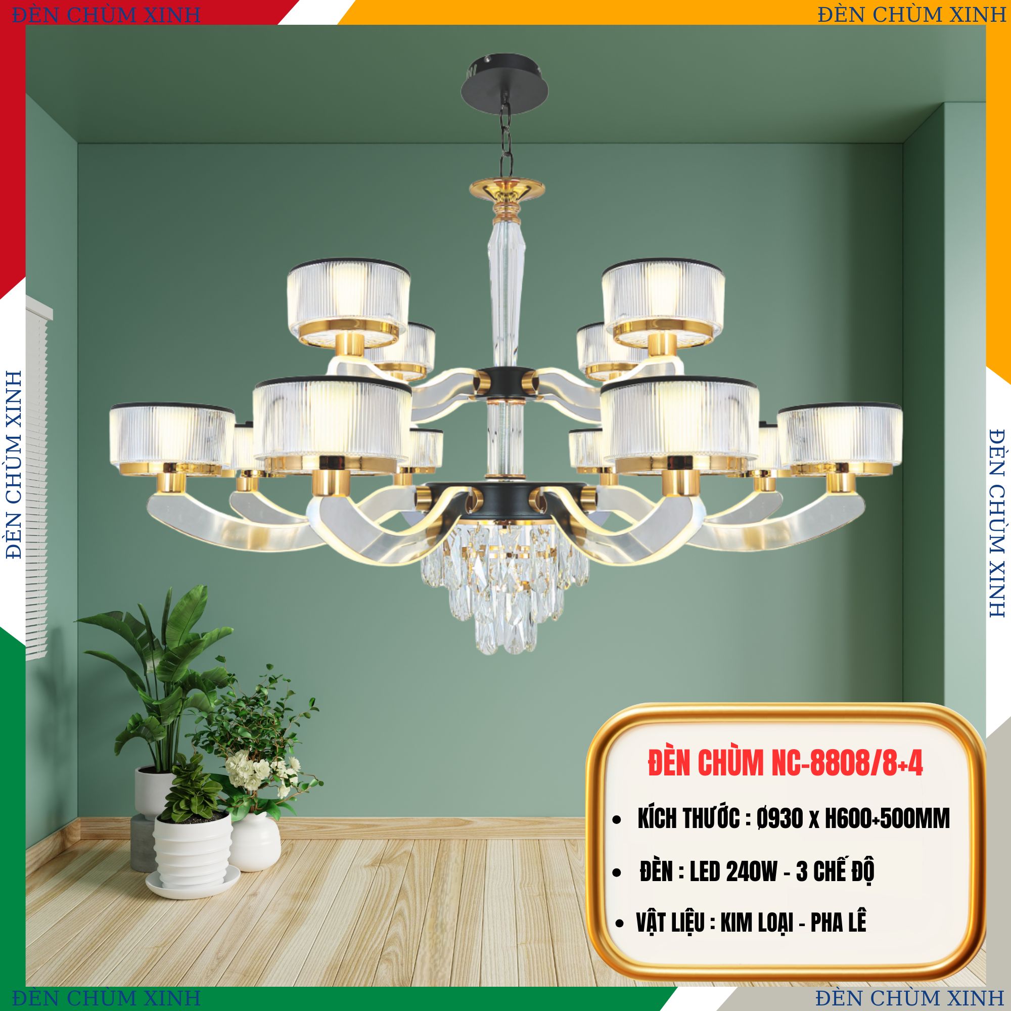 ✅THÔNG SỐ ĐÈN CHÙM TÂN CỔ ĐIỂN NC-8811/8+4: