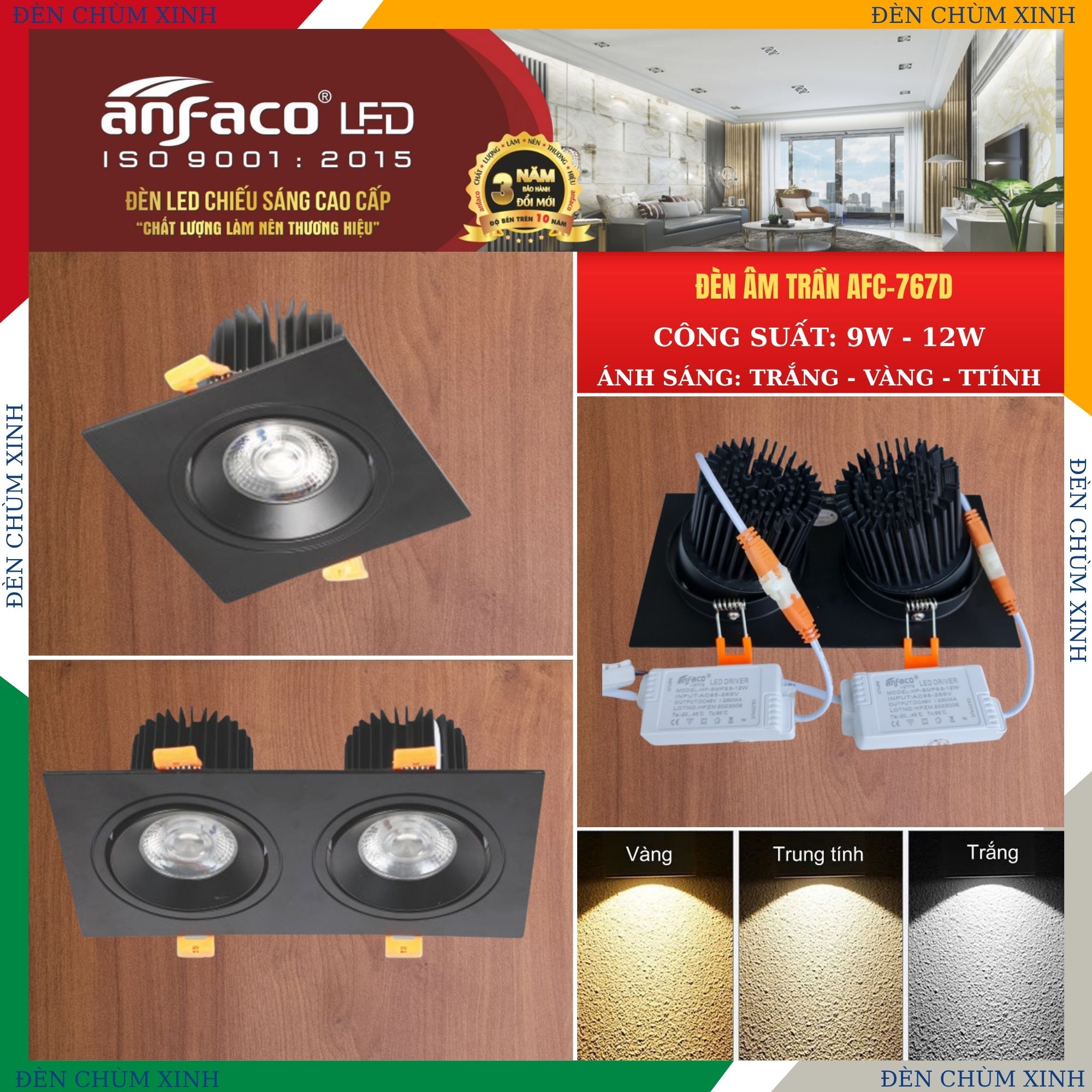 ✅THÔNG SỐ KĨ THUẬT ĐÈN LED ÂM TRẦN AFC 767D/1-9W: