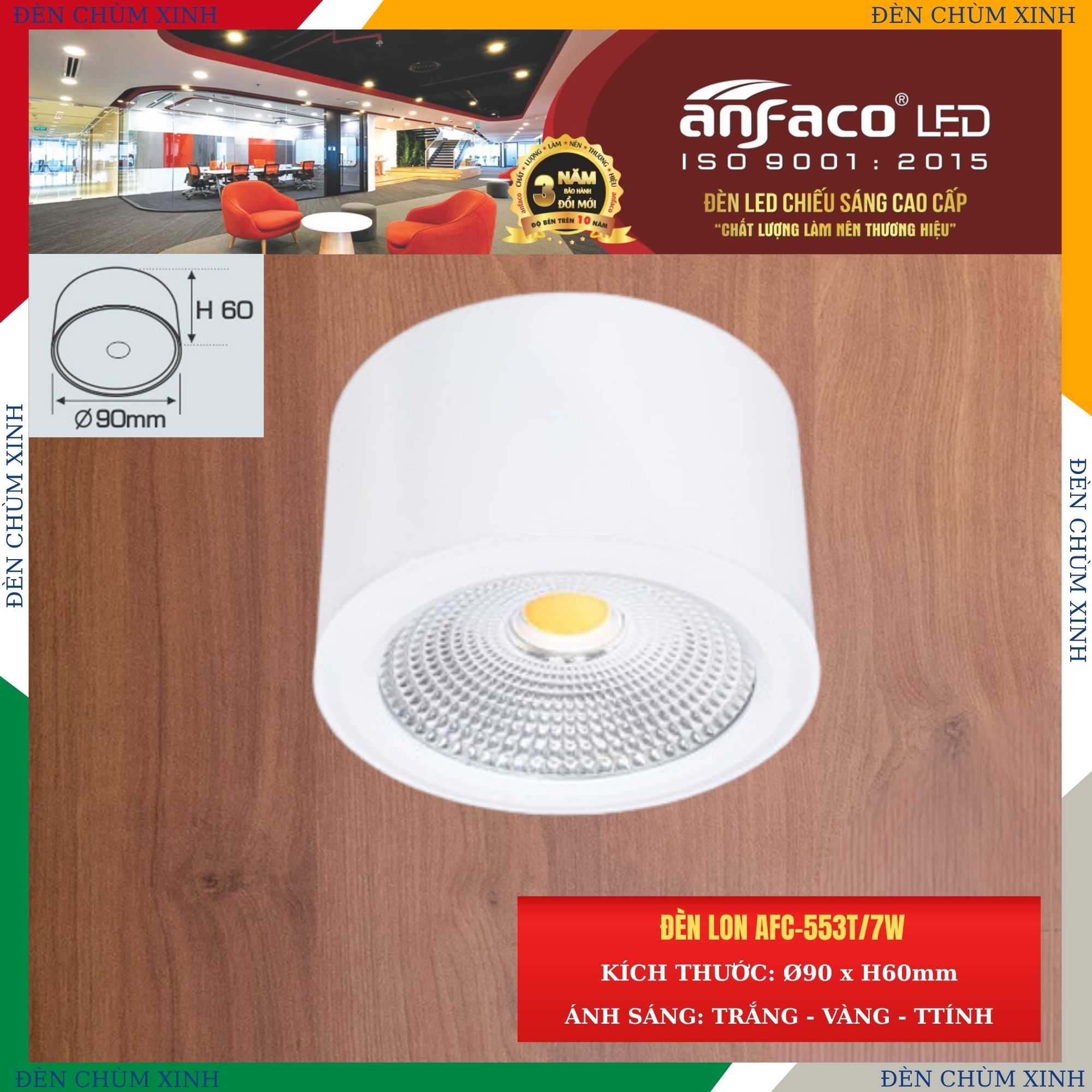 Đèn Anfaco sử dụng LED COB chips Bridgelux (USA) chất lượng cao tạo hiệu suất phát sáng & chỉ số hoàn màu cao (RA 90) giúp mang lại ánh sáng trung thực, tạo cảm giác dễ chịu cho mắt.