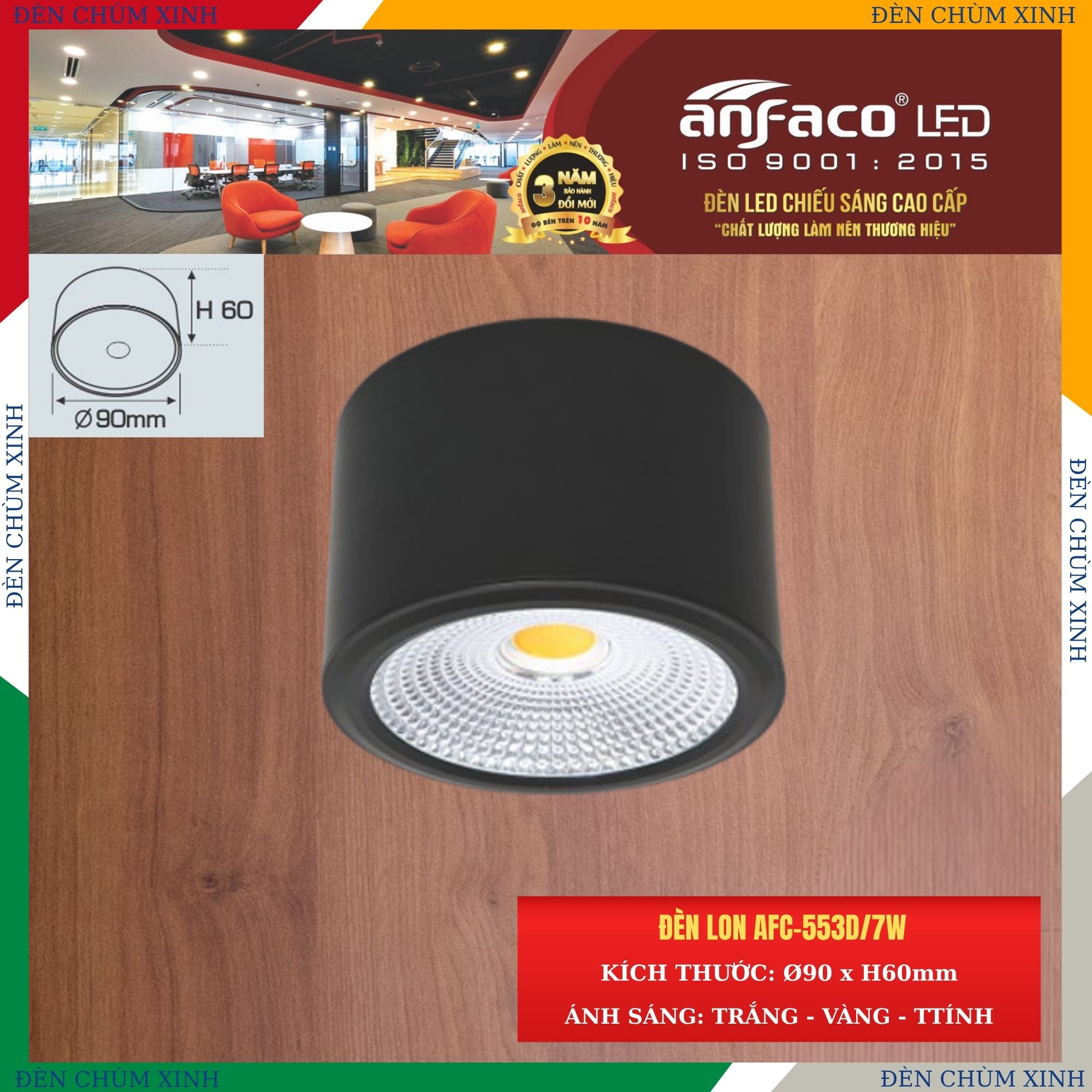 Đèn Anfaco sử dụng LED COB chips Bridgelux (USA) chất lượng cao tạo hiệu suất phát sáng & chỉ số hoàn màu cao (RA 90) giúp mang lại ánh sáng trung thực, tạo cảm giác dễ chịu cho mắt.