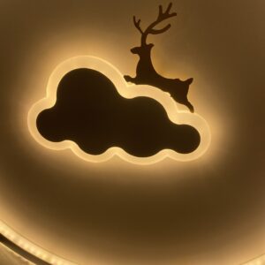 Về giá trị thẩm mỹ: Đèn được thiết kế theo phong cách hiện đại với họa tiết chú nai đang cởi trên đám mây, đem đến sự gần gũi thiên nhiên. Đèn góp phần tạo điểm nhấn nổi bật và thu hút ánh nhìn cho không gian ngay cả khi đèn không bật. Với việc thiết kế ôm sát trần, đèn đã tạo ưu thế cho những không gian có trần thấp, diện tích nhỏ.
