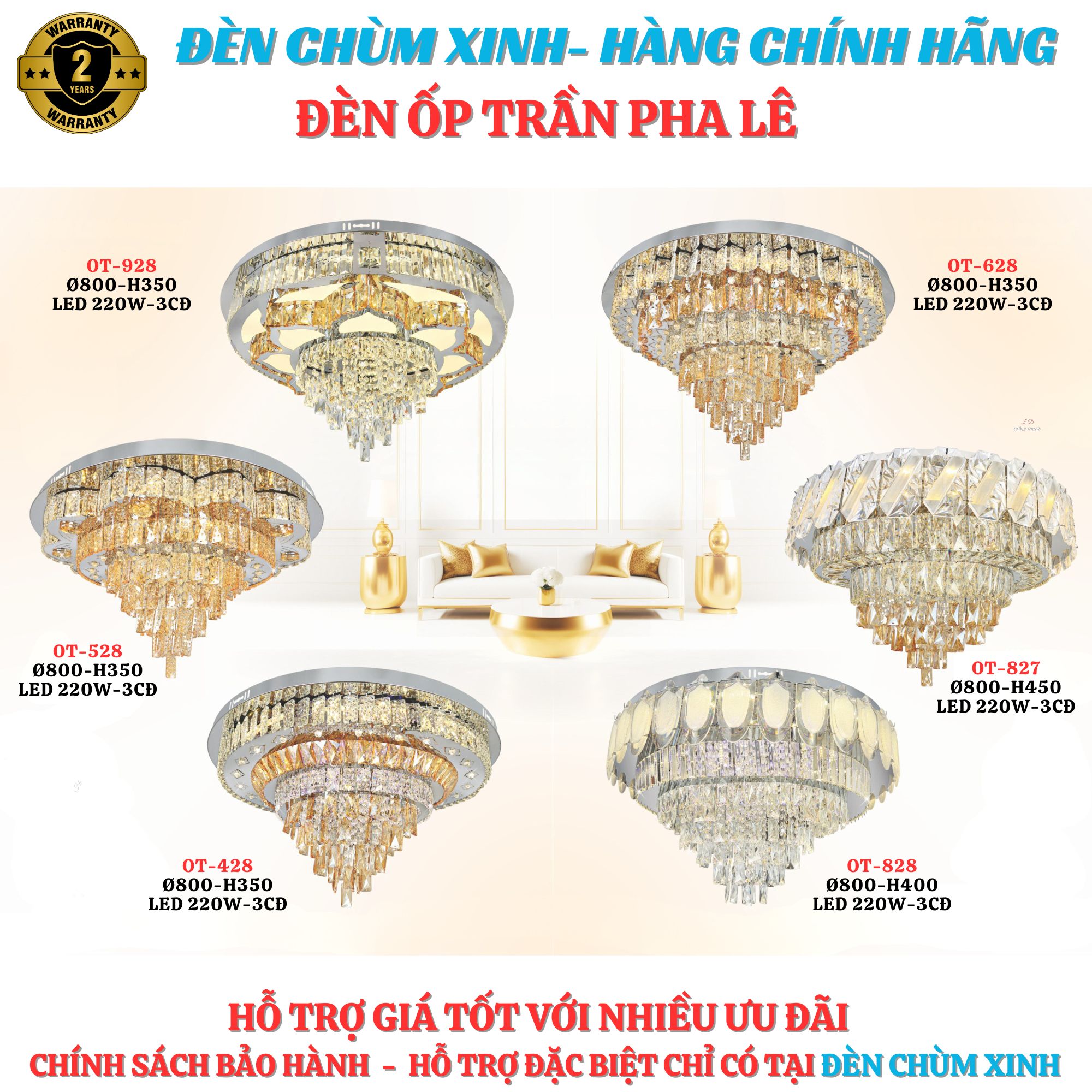 Thông số đèn ốp trần pha lê OT-827: