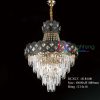 - Thiết kế ấn tượng, nổi bật sự bắt mắt của chiếc đèn thả pha lê cao cấp chiếu sáng này nằm ở chỗ chúng được những người nghệ nhân tài hoa khéo léo sử dụng chất liệu pha lê long lanh, phối màu vàng nhẹ nhàng với tạo hình độc đáo, được kết nối bởi trụ và thân đèn sắt màu vàng nâu huyền bí, góp phần làm nên một tổng thể màu sắc ấn tượng, nổi bật