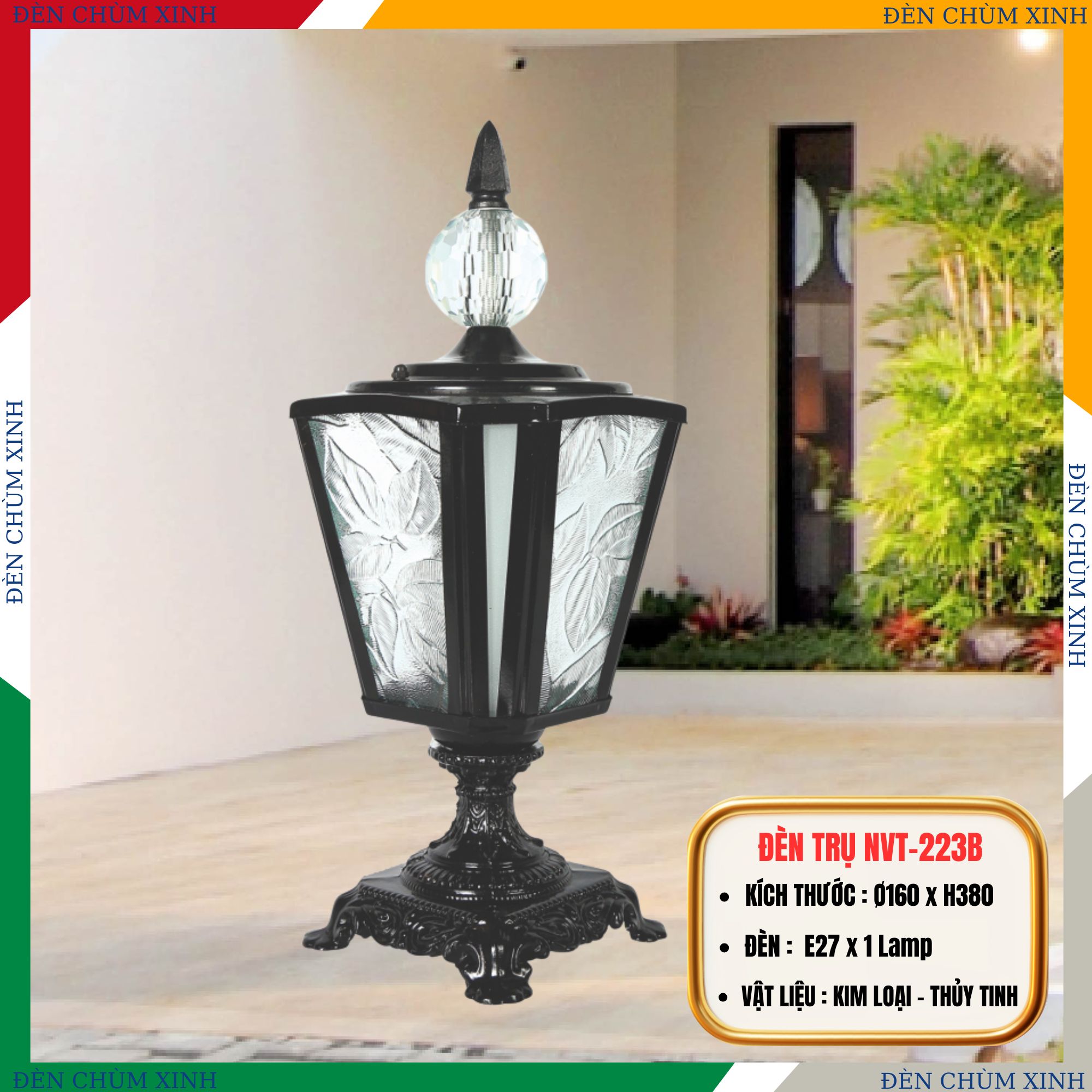 ✅THÔNG SỐ KĨ THUẬT ĐÈN TRỤ SÂN VƯỜN NVT-223A MÀU VÀNG: