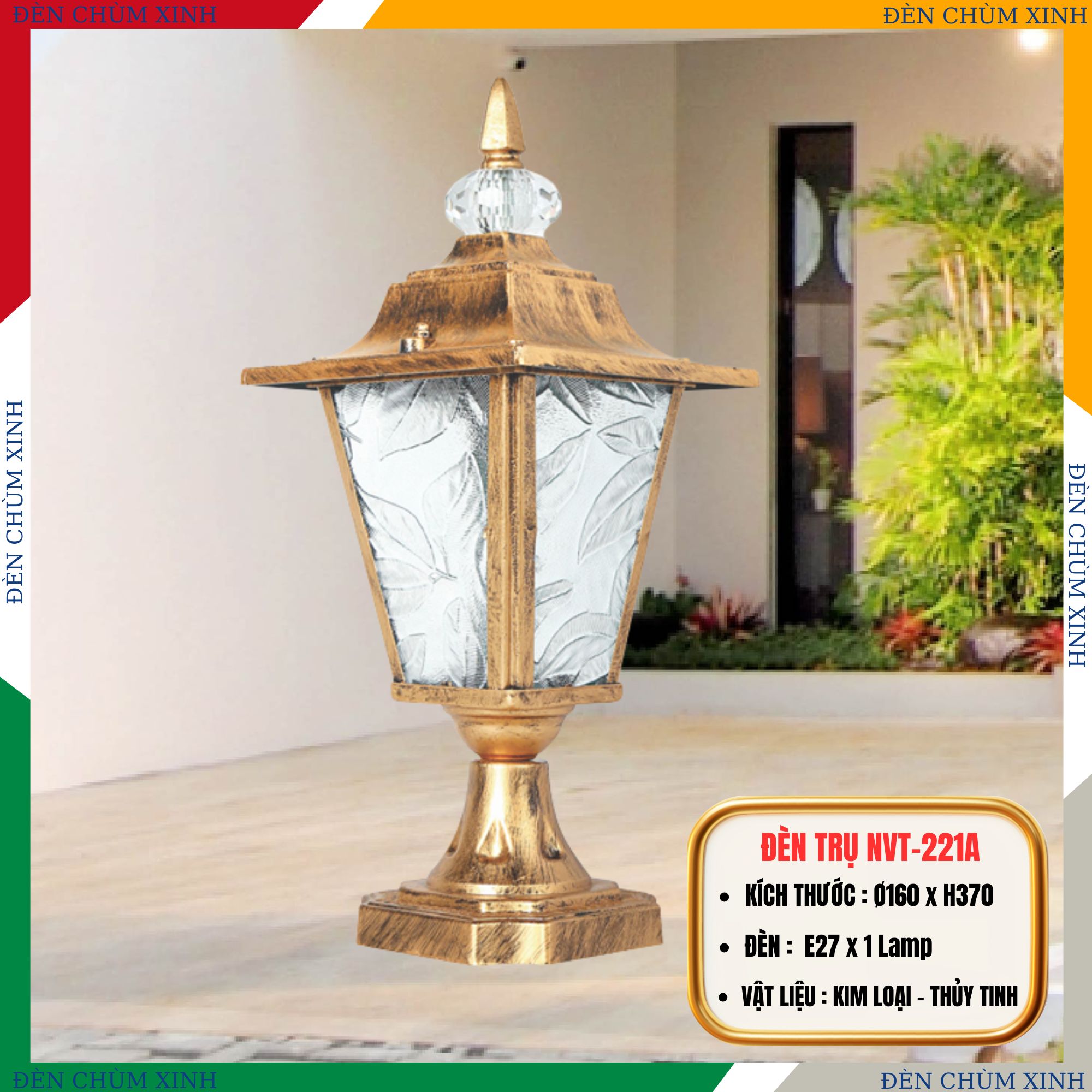 Tính thẩm mỹ cao: Đèn trụ cổ điển mang phong cách sang trọng, tinh tế với các chi tiết hoa văn uốn lượn, giúp không gian sân vườn trở nên đẳng cấp và ấn tượng hơn.