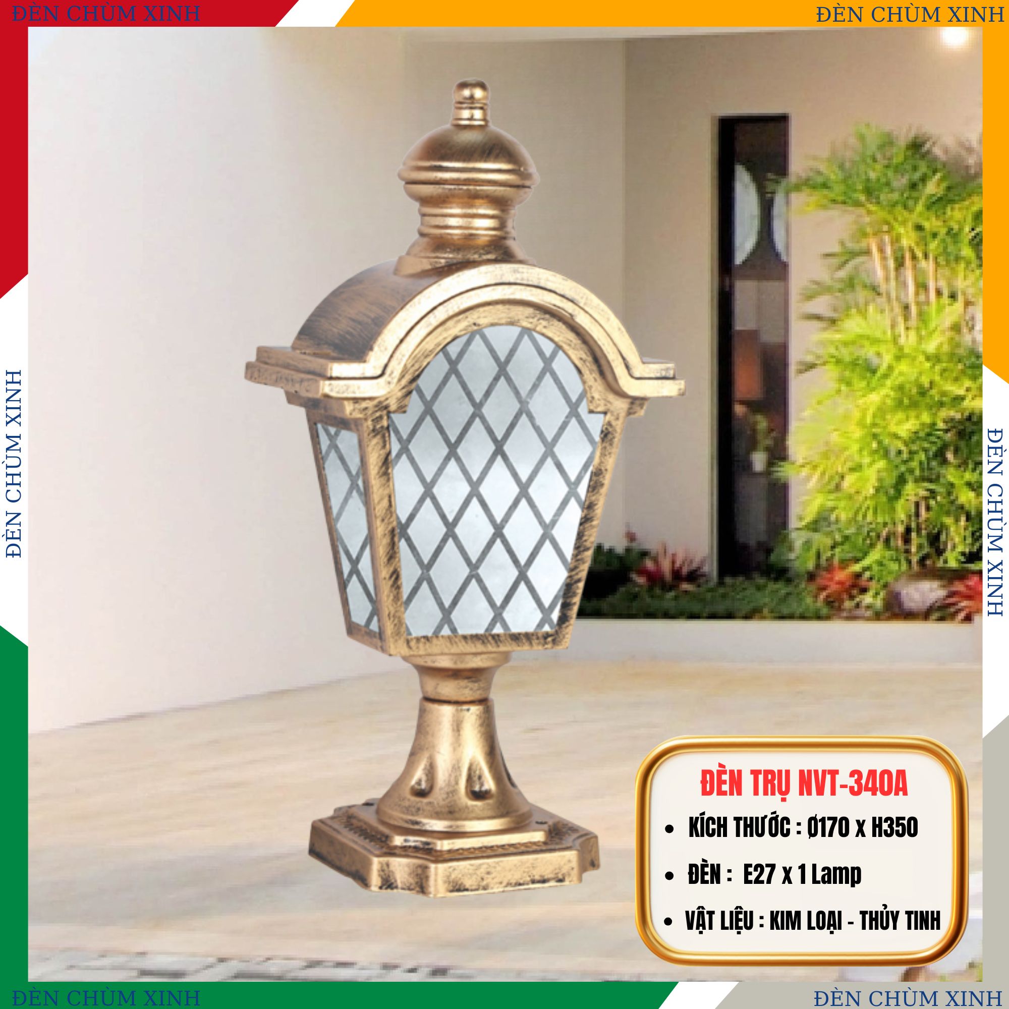Tính thẩm mỹ cao: Đèn trụ cổ điển mang phong cách sang trọng, tinh tế với các chi tiết hoa văn uốn lượn, giúp không gian sân vườn trở nên đẳng cấp và ấn tượng hơn.