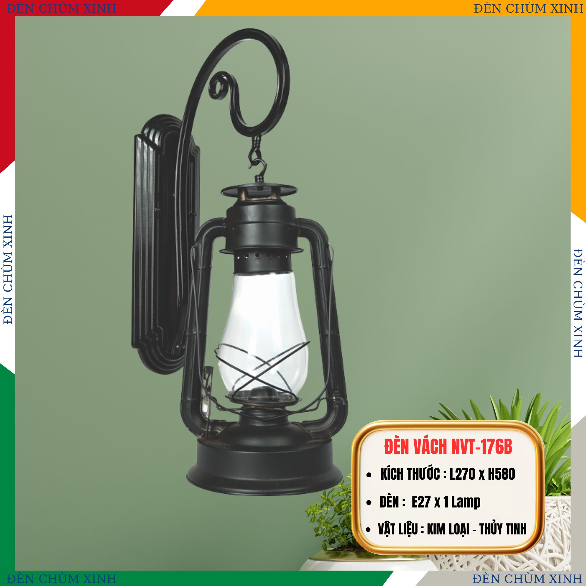 ĐÈN VÁCH TƯỜNG NVT-176A MÀU ĐEN HÀNG CHÍNH HÃNG