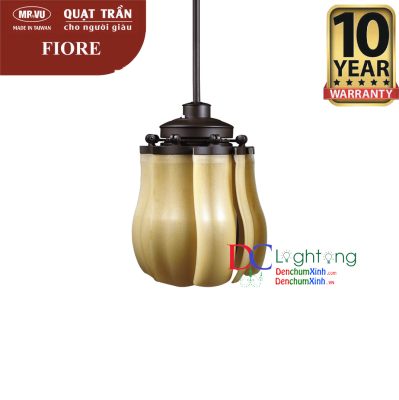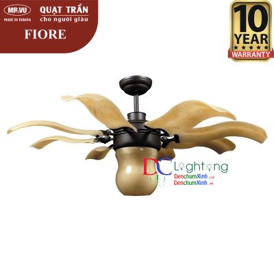 - Quạt trần cánh xếp, cụp xoè Fiore với 8 cánh làm bằng nhựa PC cao cấp, cánh quạt được làm bằng màu vàng gold sang trọng thiết kế độc đáo với ý tưởng hoa nở, khi chưa bật quạt nhìn như một chiếc đèn trang trí sang trọng, khi quạt bật các cánh quạt từ từ bung lên nở ra như một bông hoa, quạt được sản xuất 100% tại Đài Loan, vận hành êm ái không một tiếng động. Đây được coi là 1 trong 3 mẫu quạt trần cánh xếp được ưu chuộng nhất trên thị trường quạt trần cao cấp tại Việt Nam. Quạt phù hợp lắp đặt cho phòng khách, phòng ăn có chiều cao trần nhà từ 2,8m