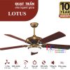 Quạt trần LOTUS NL sử dụng 2 gam màu: đồng thau truyền thống hoặc đồng vàng sang trọng cho mẫu Quạt chiến lược Lotus với mong muốn gửi gắm vào đó những câu chuyện lịch sử hào hùng về 1 Việt Nam, trải qua bao thời kỳ phát triển truyền thống văn hóa và kiến trúc. Thế nên, mỗi khi gia chủ thả hồn mình theo làn gió mát lành của Lotus và chiêm ngưỡng vẻ đẹp Quốc hoa rực rỡ trên họa tiết tay cánh Quạt sẽ thấy tinh thần mình thật thư thái.