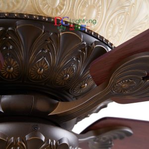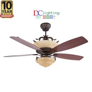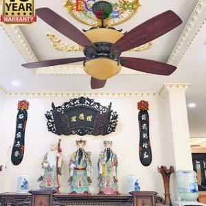 Cánh quạt được làm từ gỗ tự nhiên với màu nâu vân gỗ phù hợp với phong cách phòng trần gỗ và các bộ bàn ghế gỗ tạo nên 1 căn phòng hài hòa