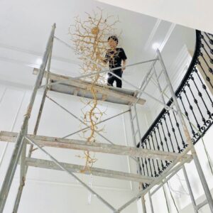- Phân tích chất liệu trần và lên kế hoạch: Phải khảo sát, tính áp lực trần với trọng lượng đèn một cách cẩn thận, chi tiết. Đòi hỏi nhân viên khảo sát và thiết kế thi công phải có kinh nghiệm, kiến thức, kĩ thuật cao. Phải lên bản chi tiết, cách lắp từng bộ phận, cách treo đèn…vvv