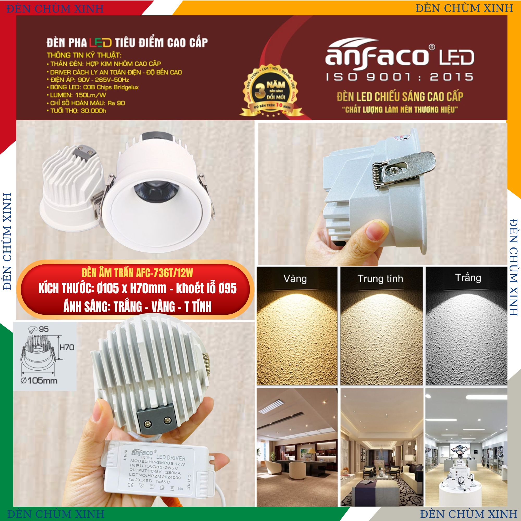 ĐÈN ÂM TRẦN CHÍNH HÃNG ANFACO AFC-736/12W ( 3 MÀU )