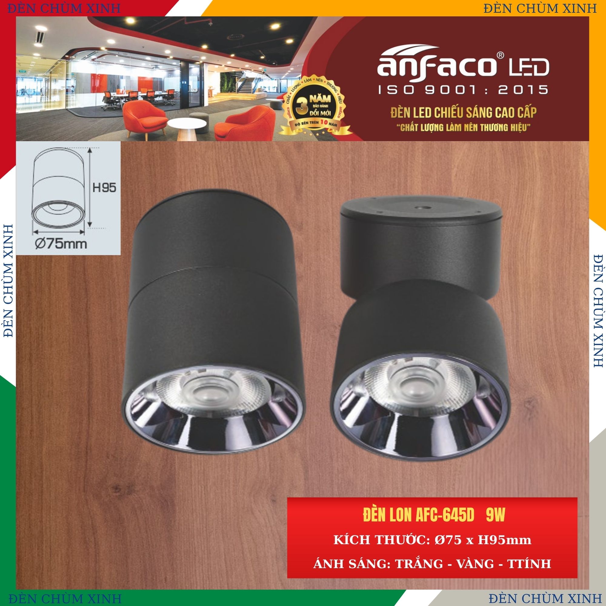 ĐÈN LED NỔI AFC 645D-9W ĐEN ĐIỀU CHỈNH GÓC CHÍNH HÃNG ANFACO