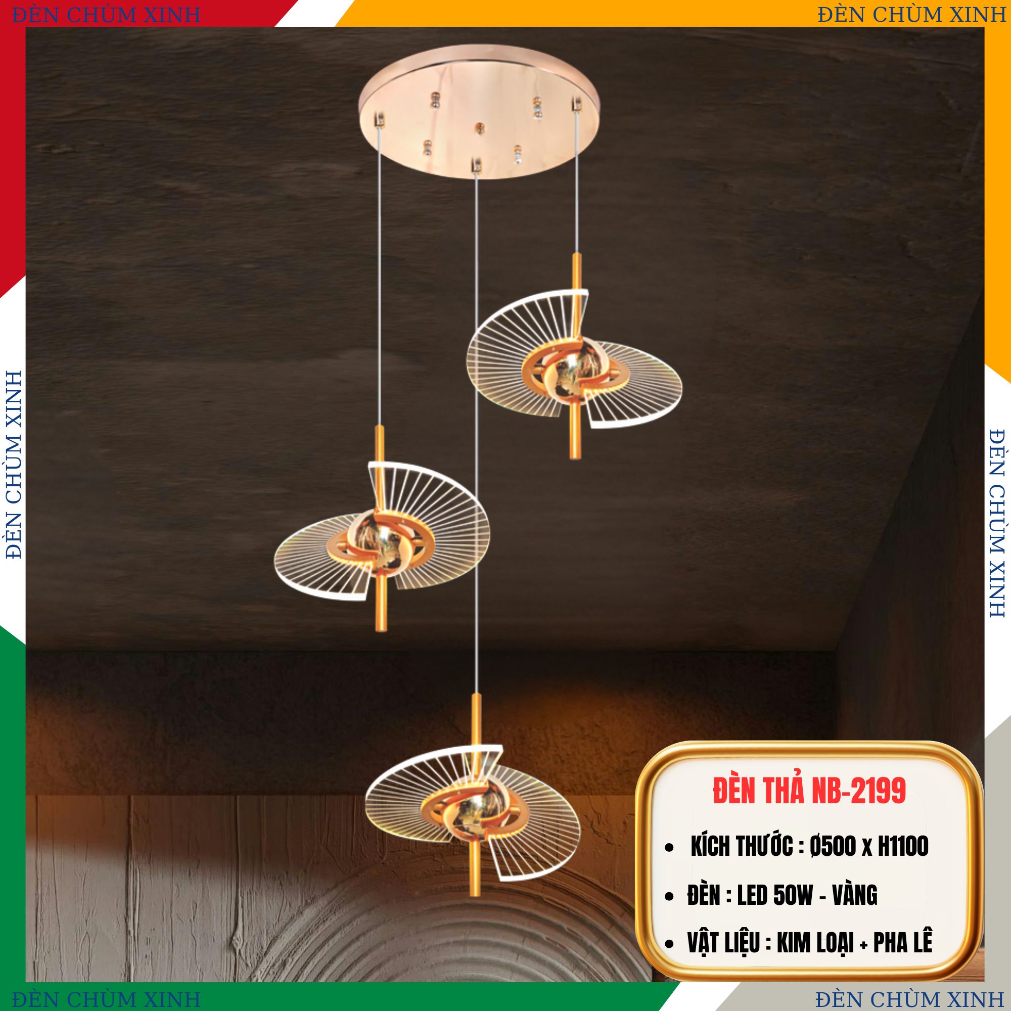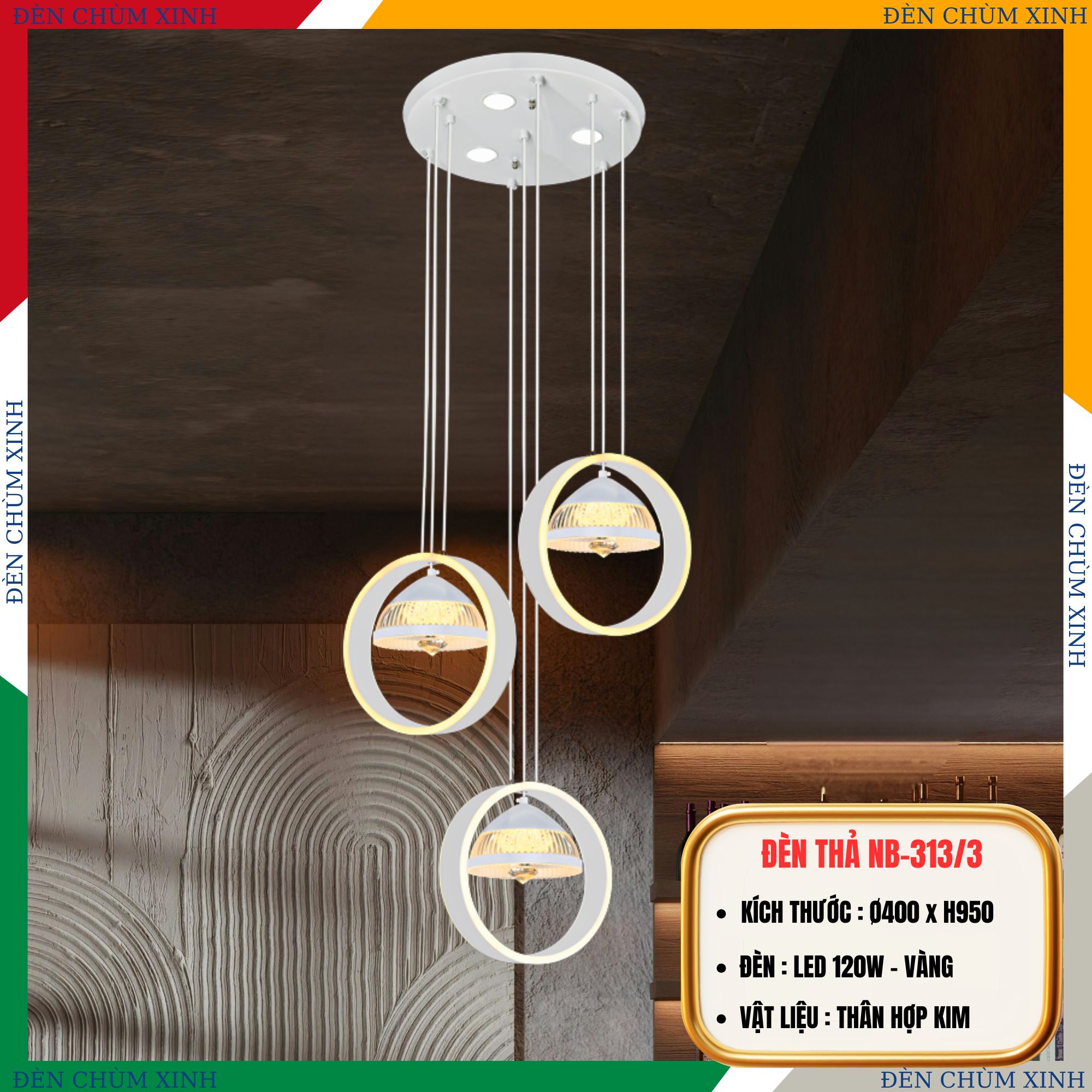 Đèn thả led hiện đại THD-7D chính hãng 3 chế độ trang trí phòng ngủ, salon tóc, quầy bar…vvv